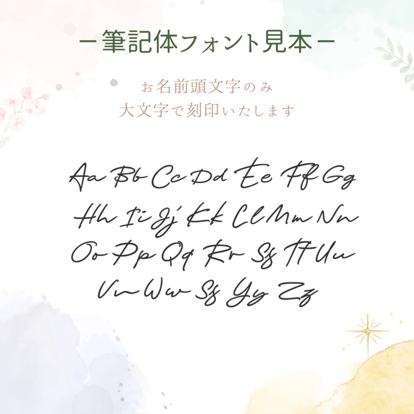 作品画像と同様に すべて欧文フォントで刻印いたします。