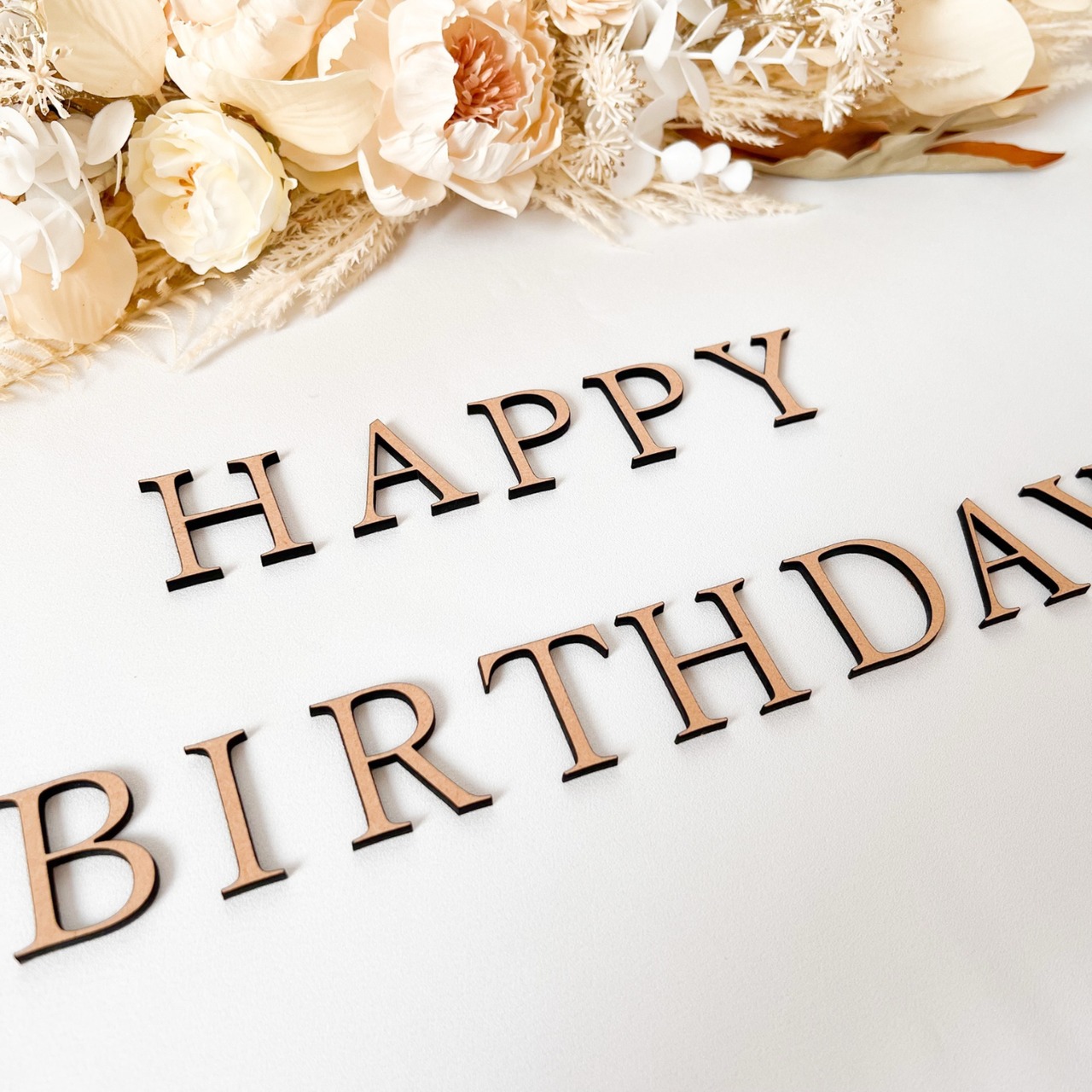 「HAPPY BIRTHDAY」の文字を、おしゃれなフォントでデザイン。